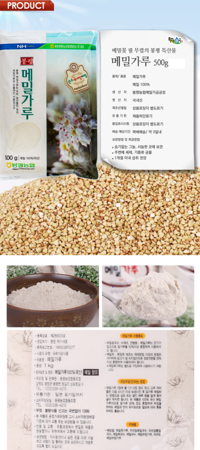 담겨있는 제품으로 밀가루를 혼합하여도 메밀고유의 맛이 유지되므로 혼용하셔도 좋습니다.